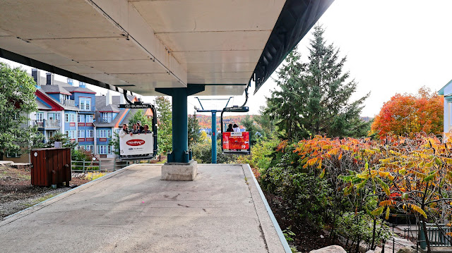 一到Mont-Tremblant先搭乘免費的La Cabriolet敞篷纜車越過商店街